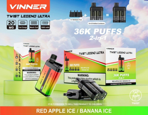 VINNER Twist Legend Ultra 2-in-1 Disposable Vape (36,000 Puffs) – Red Apple Ice / Banana Ice