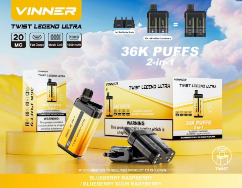 VINNER Twist Legend Ultra 2-in-1 Disposable Vape (36,000 Puffs) – BLUEBERRY RASPBERRY / BLUEBERRY SOUR RASPBERRY