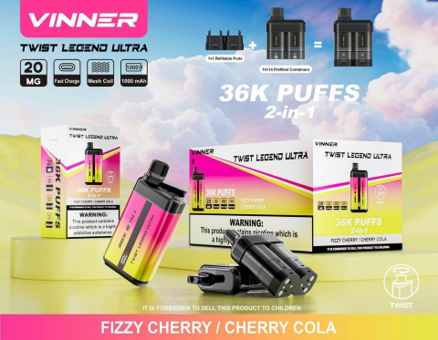 VINNER Twist Legend Ultra 2-in-1 Disposable Vape (36,000 Puffs) – FIZZY CHERRY / CHERRY COLA
