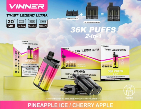 VINNER Twist Legend Ultra 2-in-1 Disposable Vape (36,000 Puffs) – PINEAPPLE ICE / CHERRY APPLE