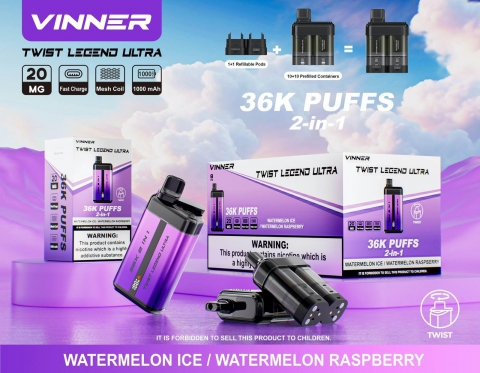 VINNER Twist Legend Ultra 2-in-1 Disposable Vape (36,000 Puffs) – WATERMELON ICE / WATERMELON RASPBERRY